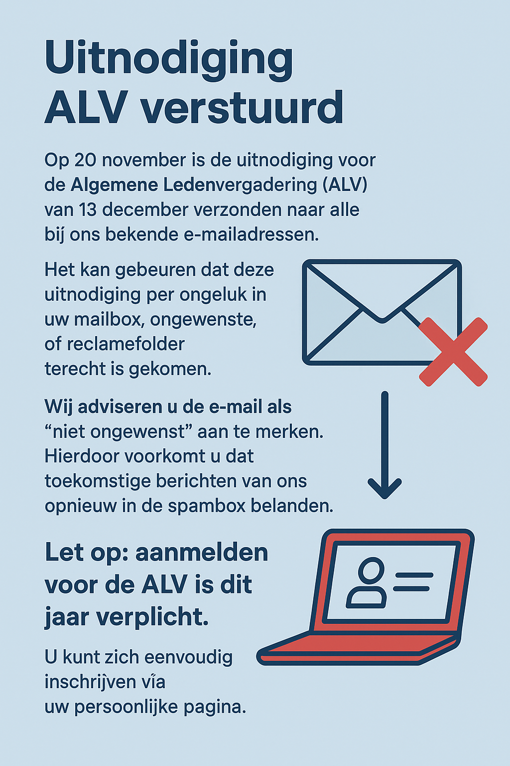 Uitnodiging ALV 2025 verstuurd; controleer uw mailbox
