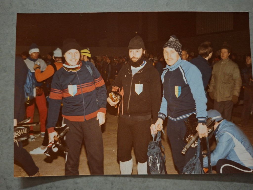 In Dokkum aangekomen, na veel kluunwerk, werden we (broer Jan en buurman Herman de Bruine) overdonderd met een daverend gejuich en applaus. Ik had niet in de gaten dat het voor ons als Elfsteden rijders bedoeld was. Altijd zal mij bij blijven het stuk van Dokkum naar Bartlehiem, waarbij we werden bij geschenen door tractoren die de Dokkumer Ee verlichten. Regelmatig viel er een rijder in het water dat inmiddels een paar centimeter op het ijs stond. Dit ging dan gepaard met enkele krachttermen.